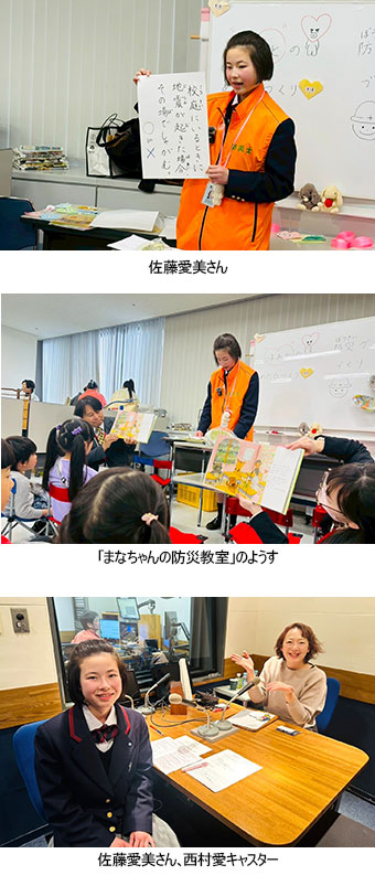 「まなちゃんの防災教室」は、災害時に役に立つ「紙食器の作り方」や、「防災絵本の読み聞かせ」、「防災〇×クイズ」など、年齢を問わず楽しく防災を学ぶことができる内容になっています。番組では、防災の大切さを伝えている中学生防災士の佐藤さんをゲストにお迎えします。