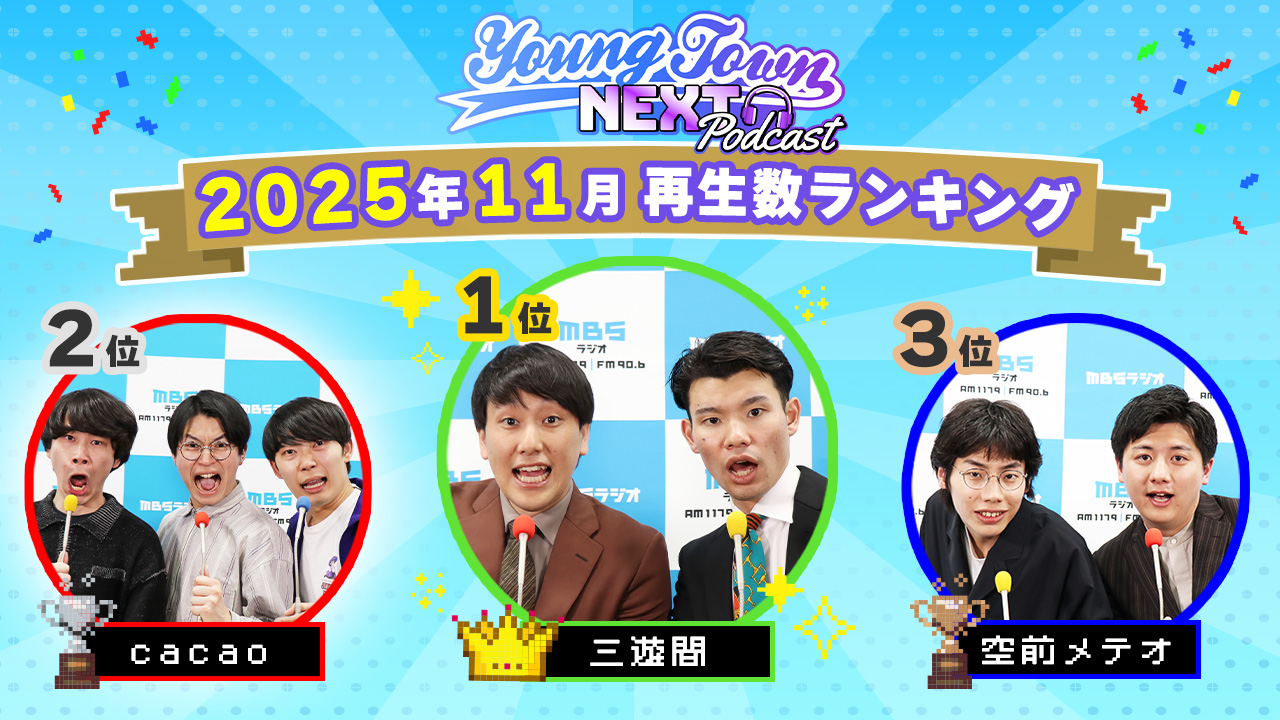 2025年5月からスタートした「MBSヤングタウンNEXT Podcast」第1期のフィナーレとなるイベント。 8か月にわたるレースの上、会場で遂にレギュラーとなる1組が発表されます